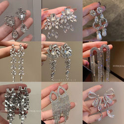 Vente en gros de boucles d'oreilles en alliage de zinc 925 plaqué or pour femmes, pendentif en forme de lune, fleur, papillon, zircon, cadeau